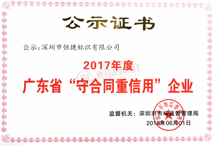 1、2017年度廣東省“守合同重信用”企業(yè)
