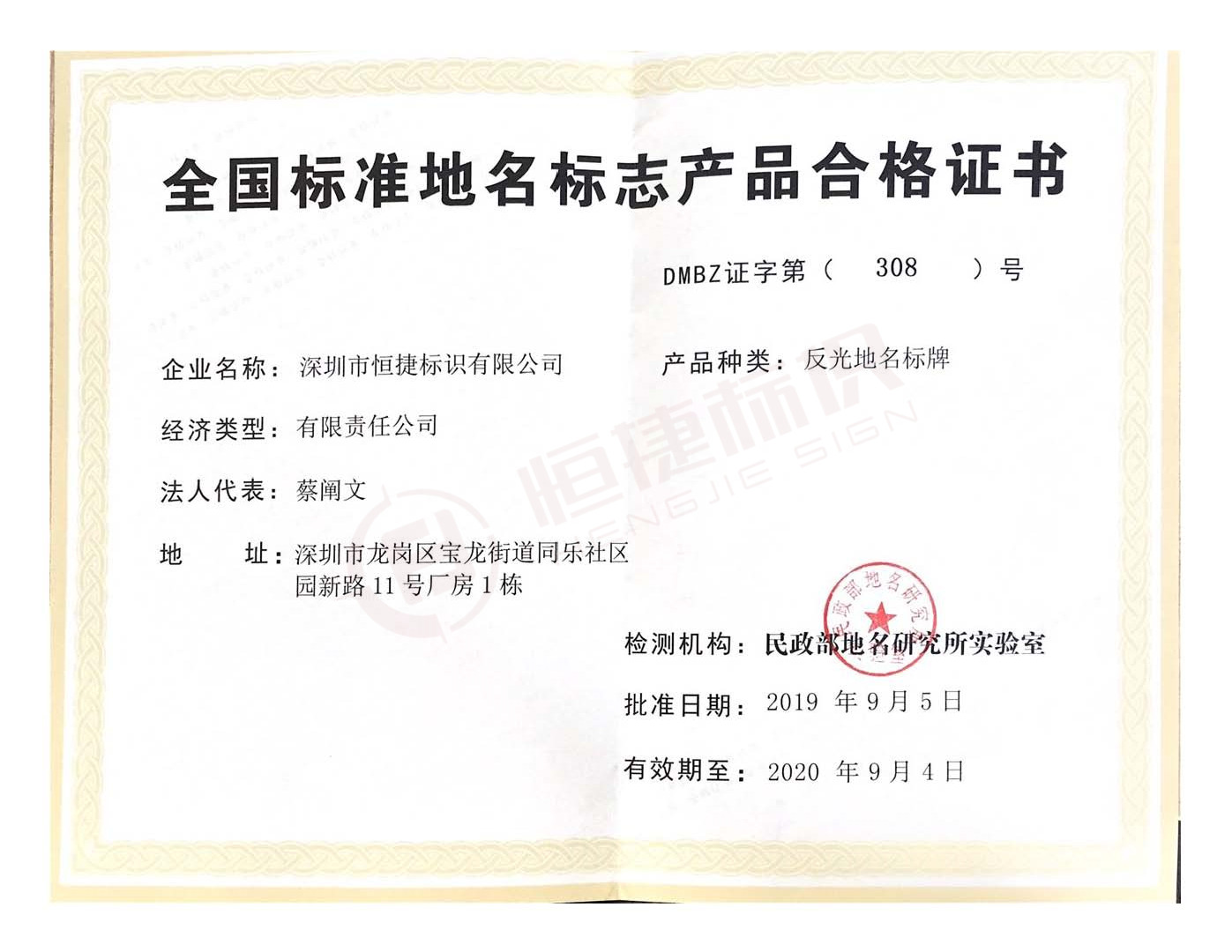 4、全國(guó)標(biāo)準(zhǔn)地名標(biāo)志產(chǎn)品合格證書